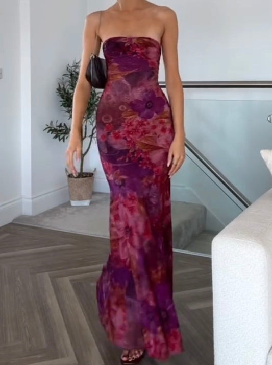 Pleated Ruffled Halter Backless A- Hem Chiffon Elegant Dress