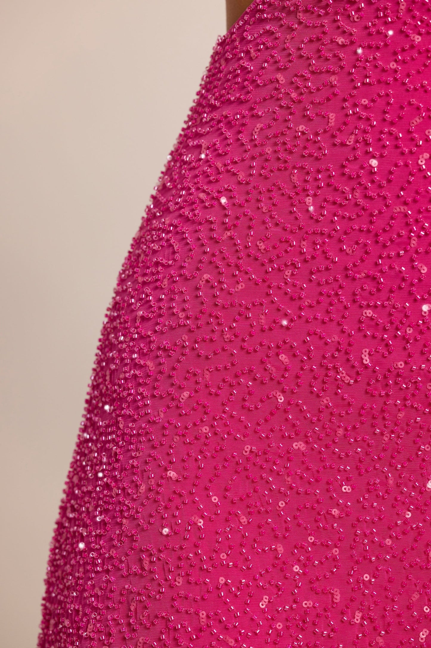 Enchanting evenings in Emilion. A fully hand embellished, dual layered mesh design, the Emilion mini dress is a unique piece for sparkling under spotlights. Complete with a thigh-skimming A-line skirt and statement cut-out across the back and sides.