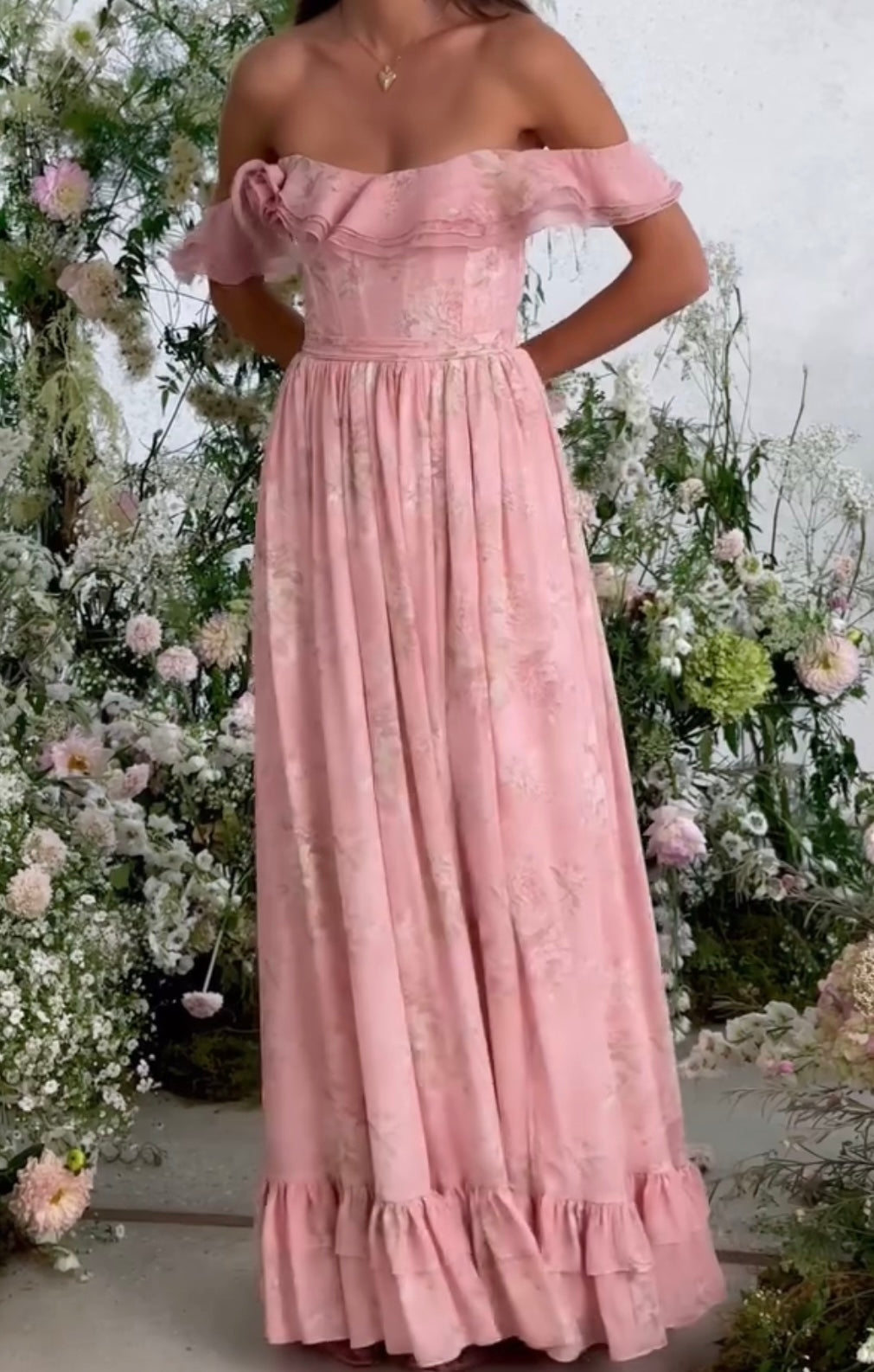 off-Shoulder Lotus Leaf Floral Dress