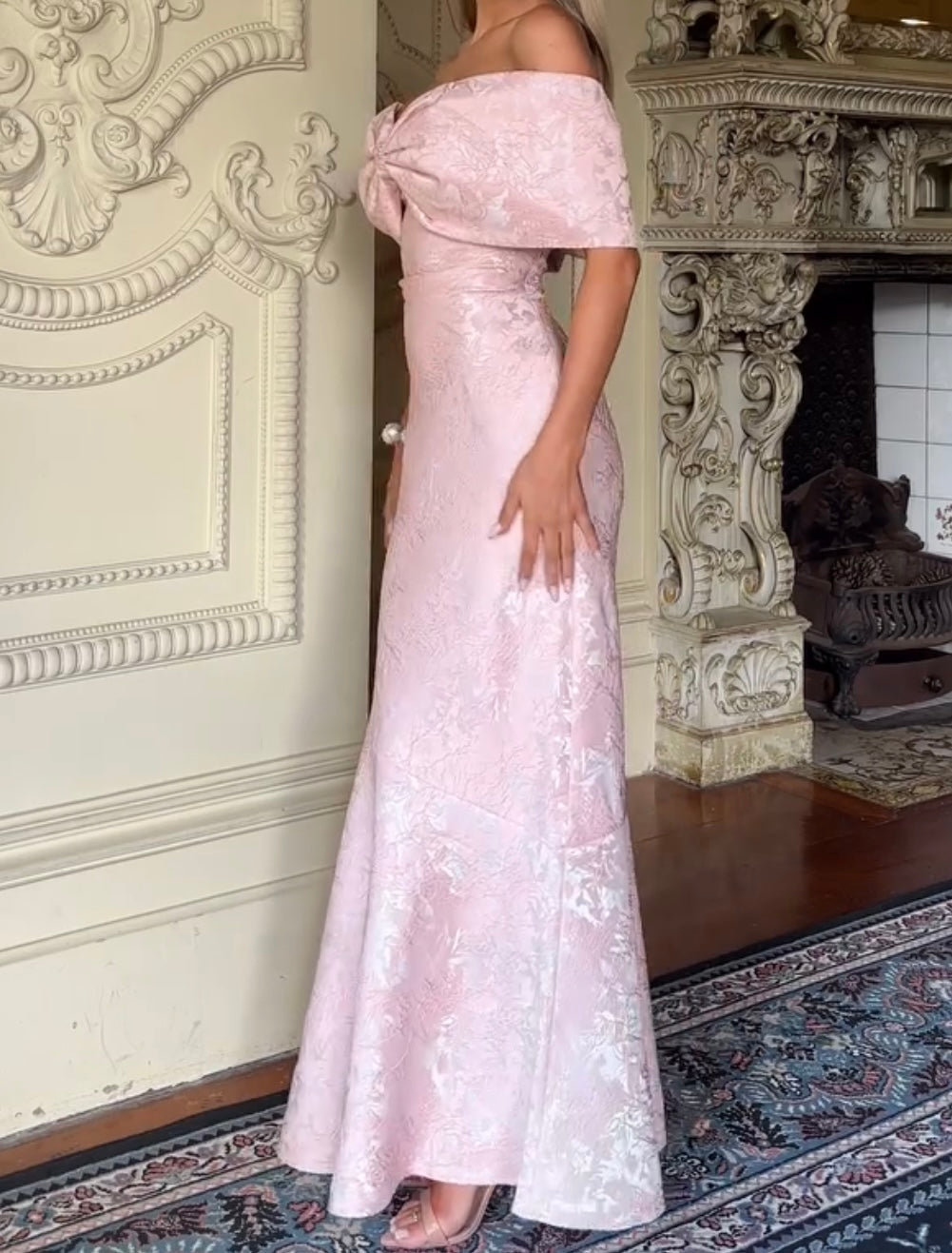 Sexy off-Neck Bow Printed Waist-Controlled Dress