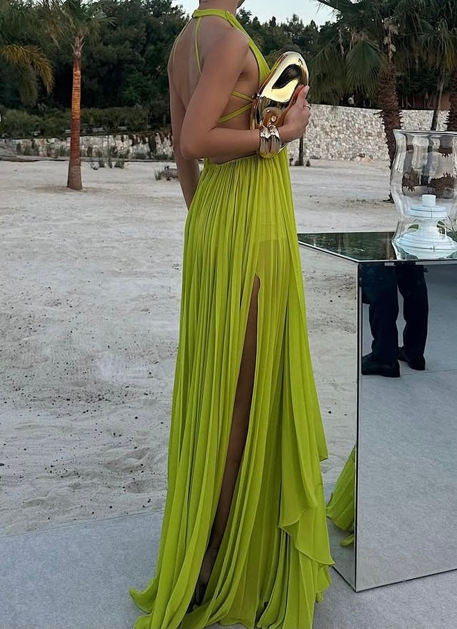 Solid Color round Neck Sleeveless Sexy Backless Beach Dress